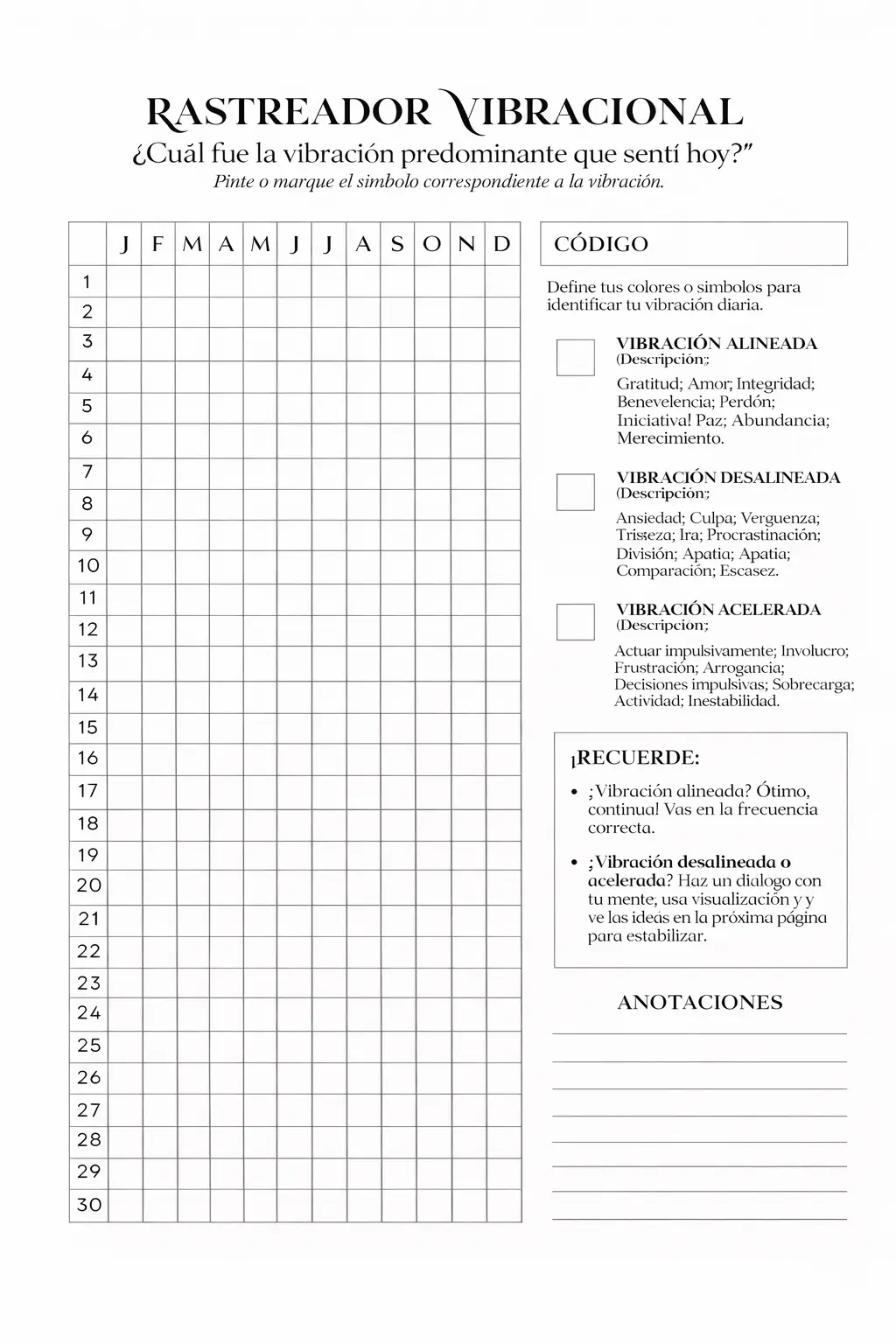 Y recibirás un poderoso ritual diario de menos de 5 minutos que reprogramará tu realidad, mientras organizas estratégicamente tu año, mes y día.